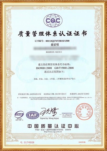 質量管理體系證書